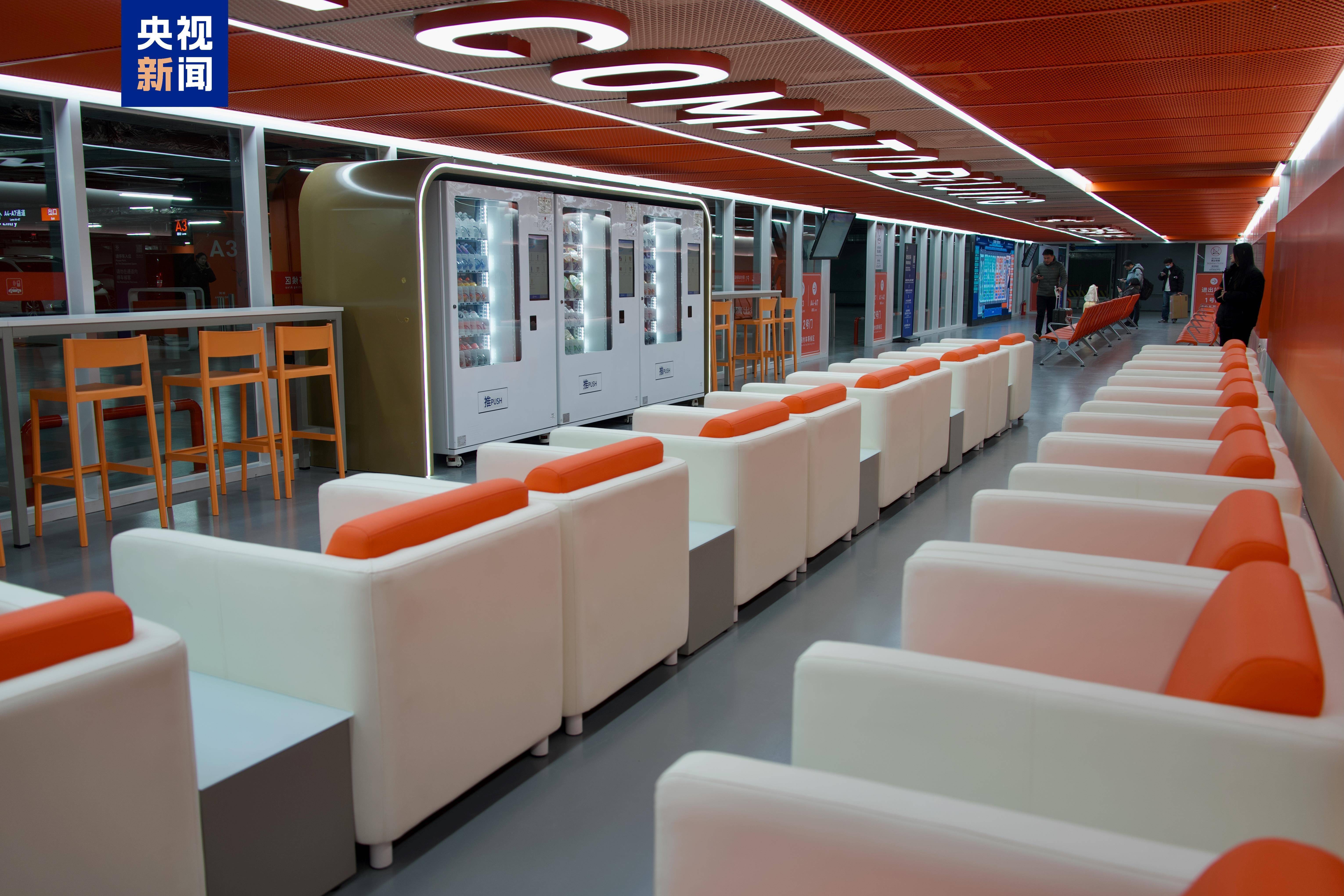 P1停车场还新建了约800平方米的网约车旅客专属候车区,面积较此前扩大四倍以上。候车区配套布设了258把座椅,配合标准化标识、智能导视屏与语音播报,构建层次清晰、指引精准的视觉环境。场内铺设环保防滑地坪、优化照明系统,实现人车分流,有效提升了旅客候车的安全性与舒适度。